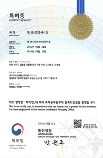 작성 관련 특허증 -