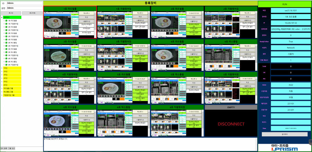 아이프리즘 비전 통합 시스템(IIMS)은 실시간 생산 공정을 확인 할 수 있는 모니터링 대시보드 화면이 제공 되며,